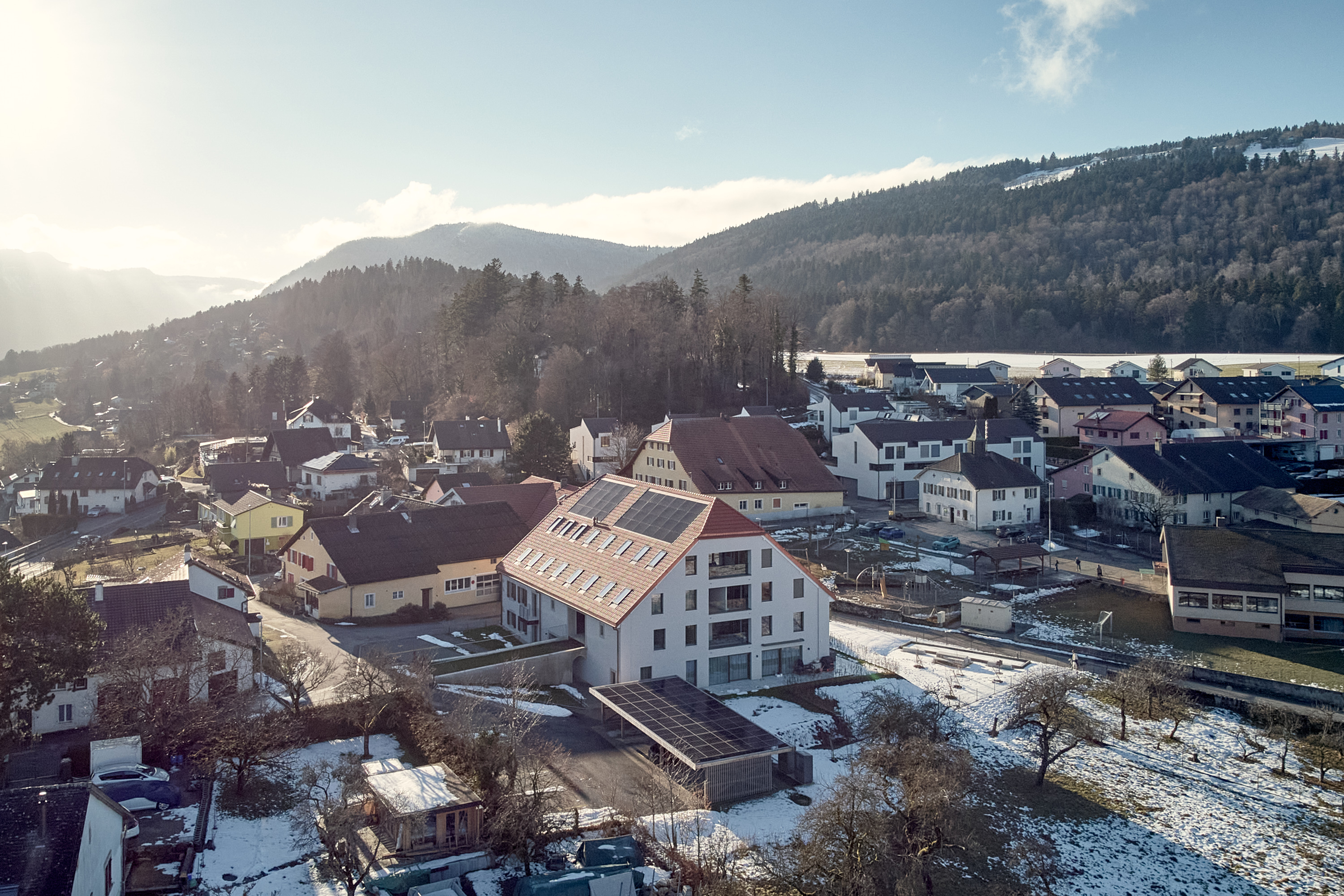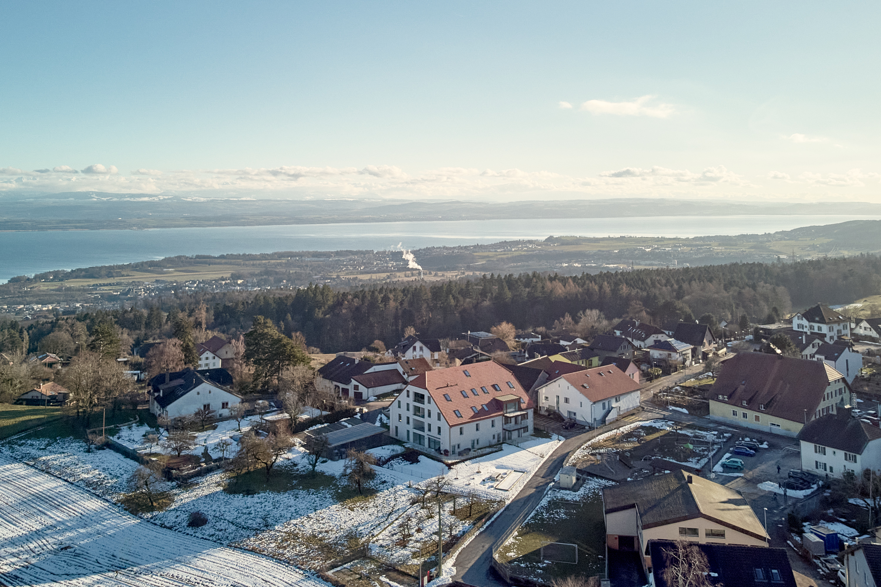 Six spacieux appartements de 3 1⁄2, un de 4 1⁄2 et trois de 5 1⁄2 pièces se répartissent sur 4 niveaux dont 2 duplex. Les orientations sud-est et sud-ouest des espaces de jour permettent de profiter, par le biais d’une loggia, d’un maximum de lumière naturelle. Tous les logements bénéficient de terrasses, balcons ou loggia. Se différencie le rez-de-chaussée avec un jardin privatif et une grande terrasse jouissant d’un magnifique dégagement. Ce bien vous propose des matériaux de qualité; chaque propriétaire est libre de définir, à l’aide de nos fournisseurs, ses choix pour le personnaliser. Le sous-sol dispose d’un espace cave à vin et propose à chacun des propriétaires un espace personnel. Un parking extérieur vient compléter ce projet.